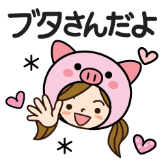 ブタさんのかぶり物した大人かわいい女子の毎日使えるスタンプ♪親切で丁寧な言葉♪ KEN graphicKEN グラフィック より発売
