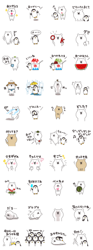 毎日使える白くまとペンギンのスタンプです。 夏verm-coffee より発売