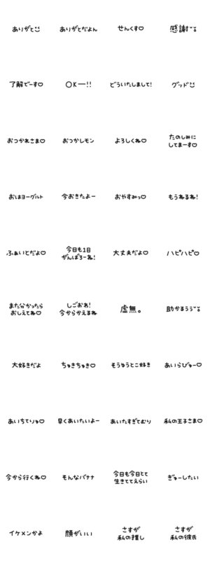 省スペース/シンプル/かわいい/可愛い/メッセージ/ガーリー/キュート/大人女子/手書き風/使える/使いやすい/毎日/日常会話/ゆるい/挨拶/フレーズ/家族/友達/彼氏/彼女/恋人