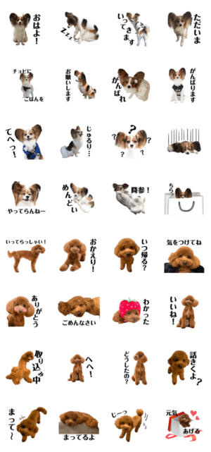 パピヨンとトイプードルの日常会話編 スタンプ画像一覧
