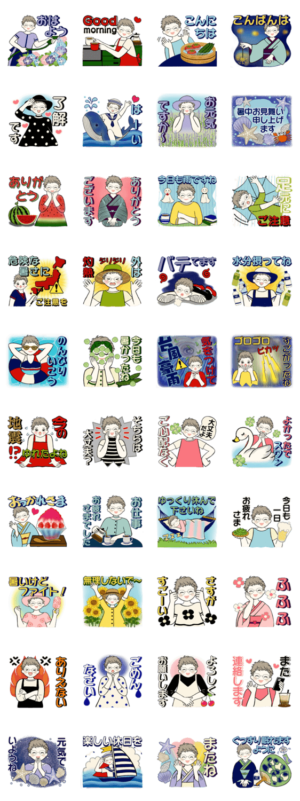 丁寧なセリフが多くて年配の方にもおすすめのスタンプです。夏っぽくて使いやすい。