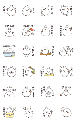 北海道に生息するシマエナガのシマ(兄)と大シマ(弟)のスタンプ。日常会話で使えるものばかりです♪ヒヌマフウフ より発売