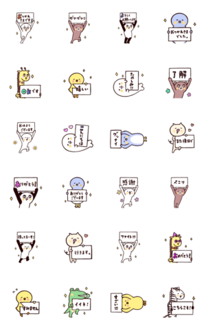 ハッピーな動物達が画面上で大きく動くポップアップスタンプです。
