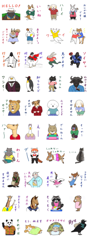 犬、ねこ、うさぎ、鳥など、かわいい&カッコイイ動物たちのユニークで楽しいスタンプです。WH より発売