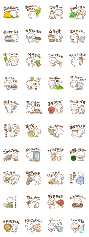 ダジャレが大好きなねこ。分かりやすくて可愛い。楽しいスタンプです。takopon より発売