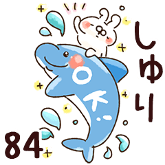 しゅり/シュリ専用84。ねことうさぎの名前スタンプ/夏/熱中症/スイカ/デカ文字/猫/天気/季節/夏祭り/猛暑/初夏/暑中お見舞い/夏休み/山田まぽん作