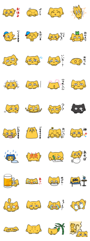 何かあった1頭身のかわいい猫が日常を便利に彩ります。夏に使えるスタンプもちょっと収録。とよでんキングダム より発売