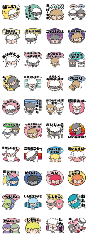 カラフル羊ちゃんの気遣いスタンプです。日常的に使いやすいです。nunonuno より発売