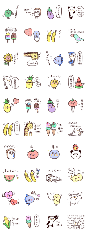 夏/野菜/果物/バナナ/スイカ/アイス/キリン/パンダ/ペンギン/ひよこ