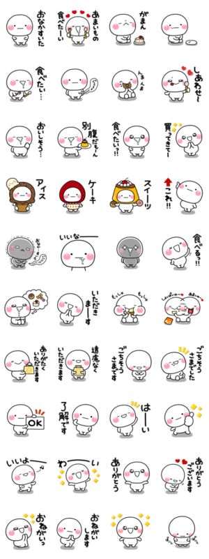 しろまるのあまいものが食べたいとき専用のスタンプです。使用頻度が高い基本スタンプも含まれておりスタンプ初心者の方にもオススメです。【作:いしいともこ】