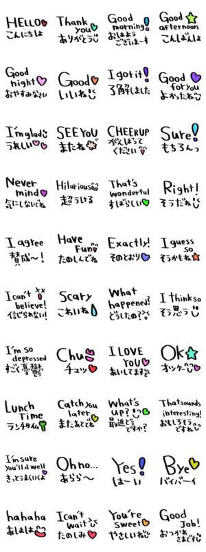 nenerinシンプル日常会話スタンプ332英語 スタンプ画像一覧