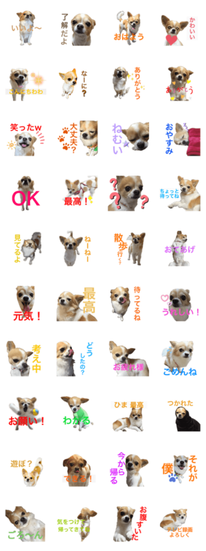 愛犬で作成した、文字大きめの日常会話スタンプです!チワワのマーク より発売