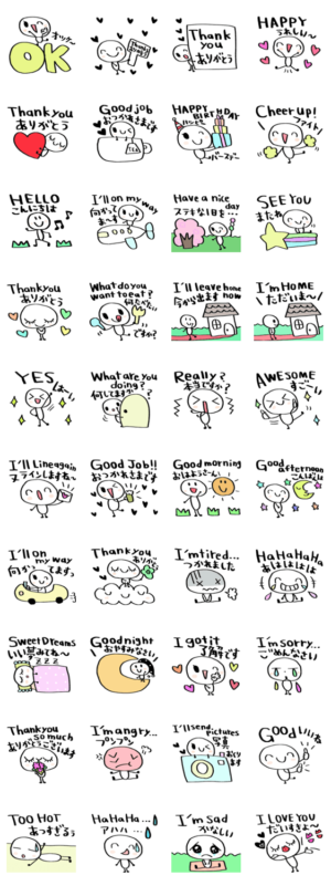 シンプルな日常会話スタンプです。日本語&英語スタンプnenerin より発売