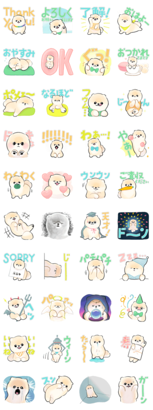 ポメラニアンのぽぽちがトリミングしてさっぱりしました。大きな文字で見やすいスタンプです。ぽこ より発売