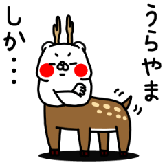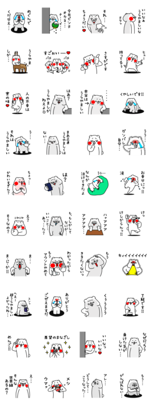 全力でうざい全力でおちょくるあざとかわいいくまがうらやましいもんは羨ましいとポジティブに伝えちゃうスタンプ。ネガティブに落ち込むこともあるけれどわりと元気です。cosotto より発売