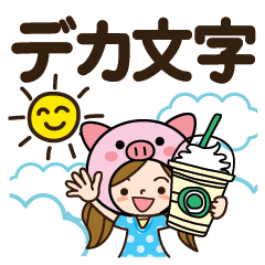 毎日使えるブタさんのかぶり物した大人かわいい女子【デカ文字】♪大きな文字で使いやすい大人の親切で丁寧な言葉スタンプ♪ KEN graphic