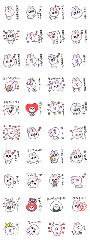 褒めまくるシュールなミニうさぎのスタンプです。eribo より発売