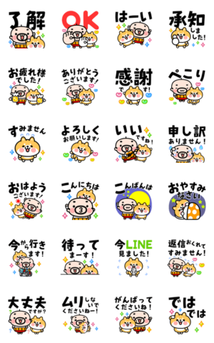 おやじ君とかわいい柴犬の飛び出すスタンプ!でか文字で見やすい挨拶&お返事スタンプです♪敬語メインで誰にでも使える定番スタンプでーす★
