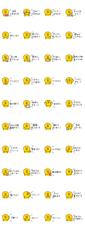 1つあると便利なサリーのスタンプ。シンプル/かわいい/大人可愛い/毎日使える/あいさつ/ひよこ/連絡/家族/恋人/友達/お誘い/返信 ※BROWN & FRIENDS をみんなでつくろう!キャンペーン参加スタンプですhitonatsu より発売