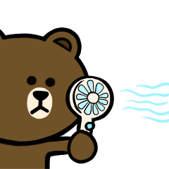 ブラウン&フレンズのサマースタンプ。暑い.熱い.暑苦しい.夏バテ.熱中症.梅雨.雨.台風.嵐.傘.お迎え.雷.クーラー.扇風機.連絡.毎年使用可能でずっと使える☆ノンノノン作 ※BROWN & FRIENDS をみんなでつくろう!キャンペーン参加スタンプですノンノノン より発売