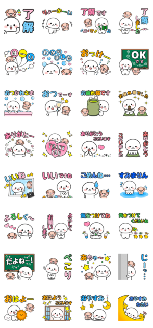 ゆる~く丸い『まるたろう』と愛犬『まる』の、毎日よく使う返信セット♪『友達や家族など親しい人に返信』『目上の人や仕事関係に返信』など、様々なLINEトークに便利です