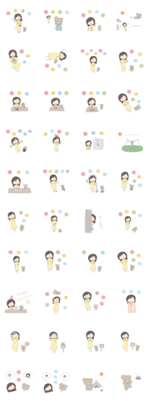 ワンピースを着た女の子とくまのゆるいスタンプです。日常に使いやすいものを集めました。ちゃこぺん より発売