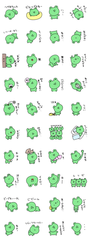 やる気が出ないシュールなミニカエルのスタンプです。eribo より発売