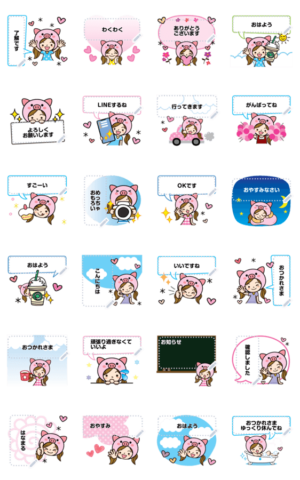 ブタさんのかぶり物した大人かわいい女子のメッセージスタンプが登場♡自由に言葉を入れて使ってみてください♪KEN graphic 現在この商品は一部のスマートフォン版LINE 10.3.0以上のトークルームでのみ使用できます。動作環境の最新情報はヘルプをご確認ください。KEN グラフィック より発売