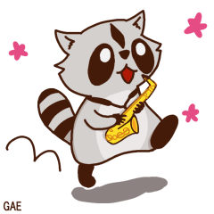 アルトサックスを吹くアライグマ(ラクーン)のスタンプです。Alto Saxophone(A.sax.)を吹く方におすすめです。
