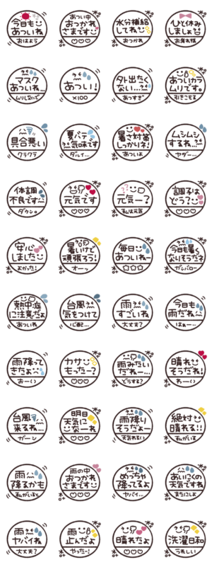 夏、梅雨時期に1つあると便利な文字スタンプです。シンプル/かわいい/くっきり/見やすい/クレヨン/ゆる/大人可愛い/毎日使える/あいさつ/判子/夏/梅雨hitonatsu より発売