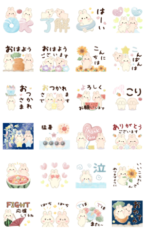 もふもふうさぎの毎日使いやすいポップアップスタンプです♡あいさつ・七夕・夏chatoran より発売