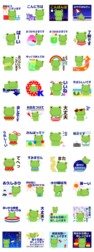使いやすいスタンプ 蛙 夏編 暑中見舞 日常 スタンプ情報