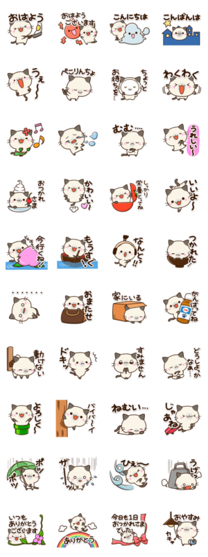 しゃむ猫の『ちびシャム』。『絵文字』と『着せかえ』もあります。毎日使える言葉から、待ち合わせでも使えるネコスタンプ。シャムねこ好きな方にぜひ。【かたこ】かたこ より発売