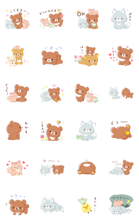 「リラックマ」からチャイロイコグマが主役のスタンプ第2弾が登場!お友達のアオイコオオカミ達もいっしょ♪「くまま~」などはちみつの森のことばにも注目です。