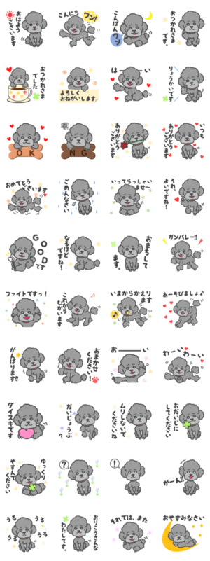毎日使える★シルバートイプードル スタンプ画像一覧