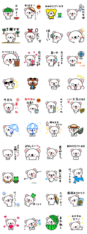 [夏] 可愛いすぎないしろくまちゃん スタンプ画像一覧