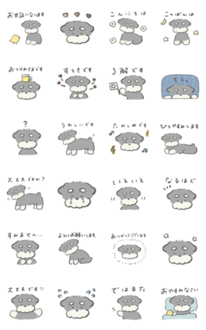 使いやすい敬語のシュナウザースタンプです。シュナウザー/手描き/ほっこり/癒し/犬/わんちゃん/ミニチュアシュナウザー/わんこ/敬語/仕事