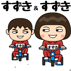 芋ジャージの【すずき】のペアスタンプ。カップル、アベック、パートナー、フィアンセ、夫婦、婚約、新婚、家族同士で、共に笑い、泣き、喜ぼう!連名でも使えます。