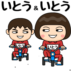 芋ジャージの【いとう】のペアスタンプ。カップル、アベック、パートナー、フィアンセ、夫婦、婚約、新婚、家族同士で、共に笑い、泣き、喜ぼう!連名でも使えます。