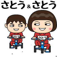 芋ジャージの【さとう】のペアスタンプ。カップル、アベック、パートナー、フィアンセ、夫婦、婚約、新婚、家族同士で、共に笑い、泣き、喜ぼう!連名でも使えます。