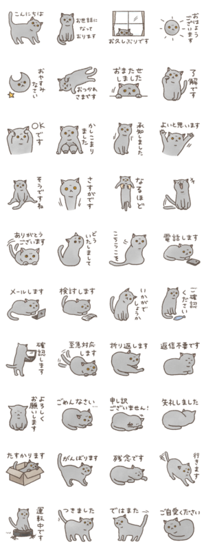 ねこのなめろうと申します。 お仕事でもつかえるような敬語のスタンプをつくりました。nuchan より発売
