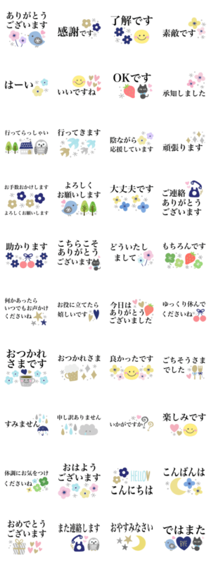 日常でよく使う言葉を集めた落ち着いた色合いの北欧風スタンプです。 定番フォントだから見やすい皆んなで使えるスタンプです。 気遣い/挨拶/カップル/ガーリー/デカ文字ちゃぴ より発売