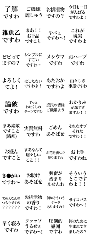お嬢様言葉スタンプ(煽り特化型) スタンプ画像一覧