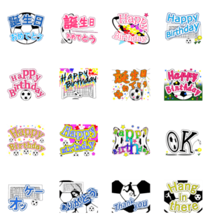サッカー道具で誕生日をお祝い。ゴールに向かってシュート! Happy Birthday、誕生日おめでとう 普段の挨拶に OK,ありがとう,Thank you,Hang in there,Sticker使えるよ。ケヤキ男 より発売