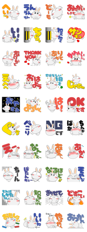 うさぎサンのデカ文字スタンプ。ポップでカラフル。毎日使える言葉、よく使う言葉を揃えました。敬語もあるよ。社会人から学生まで。朝から夜まで使えます。