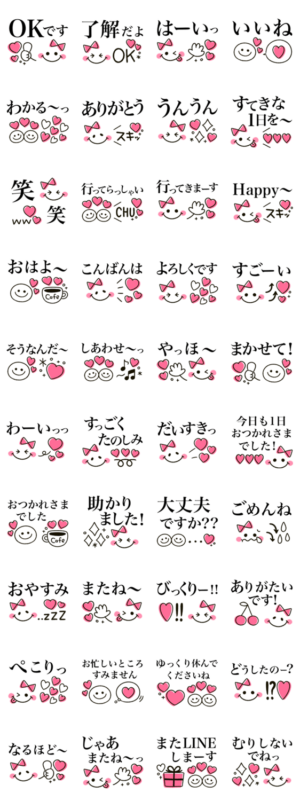 大人可愛いハートいっぱいのスタンプです♡ シンプルで可愛い毎日使える敬語や日常言葉を集めました♡ デカ文字だから見やすい毎日使いやすいスタンプです。ちゃぴ より発売
