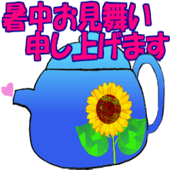 シンプルで見た目にも涼しい「花と海のでか文字」スタンプです。SEA&SKYv より発売