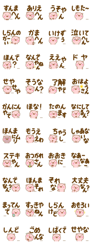 関西弁でか文字ぶたひなカスタム スタンプ画像一覧