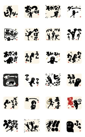 第34弾!!大きい文字・デカ文字で伝えよう!!日本の文化の「筆文字」&アニメーションスタンプで伝えよう!!動く人と墨の文字で会話にインパクトを与えてくれるはず!