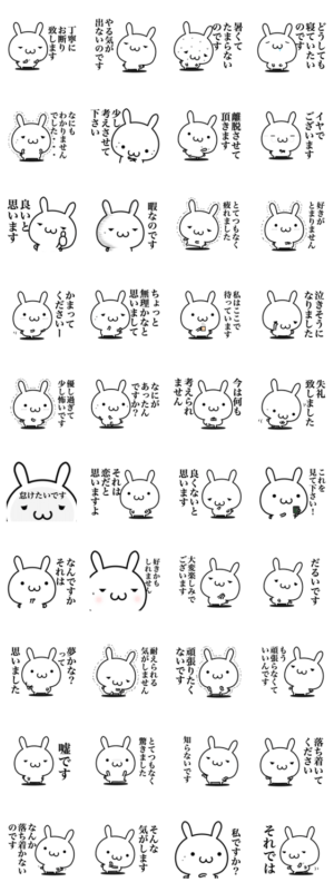 敬語のやる気ないウサギのスタンプです。hoshico より発売